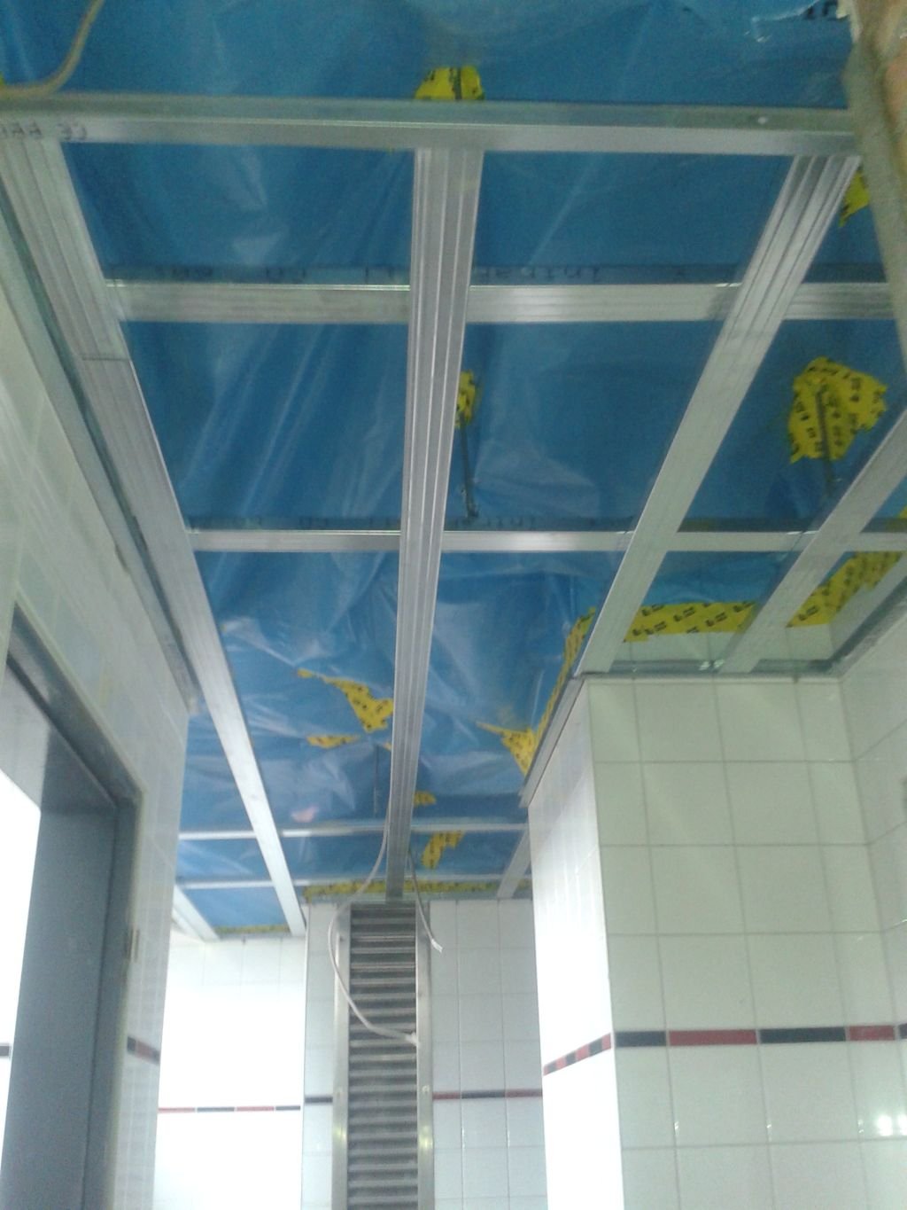 Hier finden Sie unsere Trockenbauarbeiten und Innenausbau Arbeiten in Düsseldorf. Gipskarton-Abhangdecke und Trockenbau abkastung im Ankleideraum und verschiedene Trockenbauarbeiten.